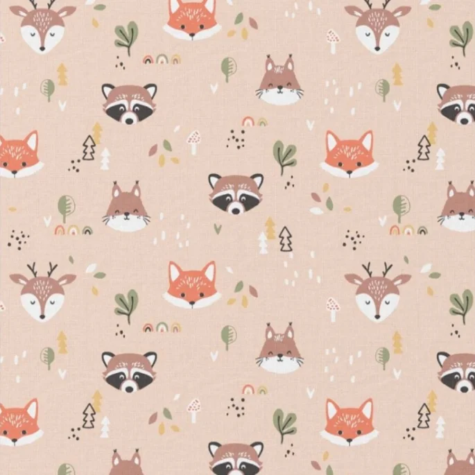| Χρώμα/Σχέδιο:Μπεζ φόντο με σχέδια φατσούλες από ζωάκια του δάσους περίπου 3.5cm σε πορτοκαλί. λευκό. μαύρο και μόκα αποχρώσεις |